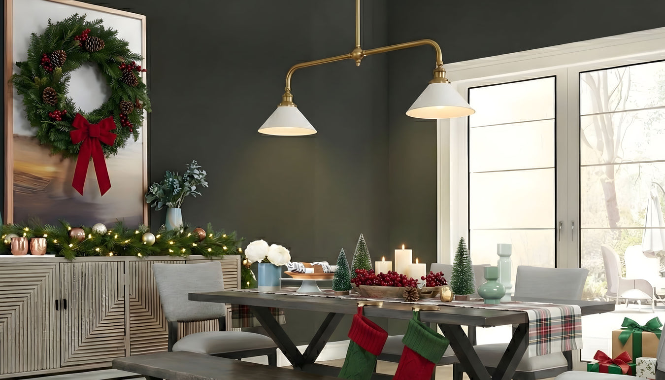 View full detailsExplore clean shapes and a light feel. Accented with simple candles and white tapered lampshades. The juxtaposition of classic, casual forms with m...