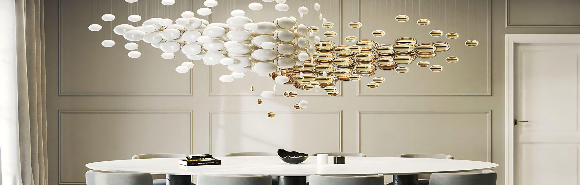 View full detailsThe Yanfu Linear Chandelier embodies the essence of sophistication with its striking contrast of colours and textures. Its design features a linea...