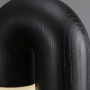 Featuring a sleek wooden arch, this table lamp combines organic elements with a modern aesthetic. Its U-shaped structure contrasts elegantly with the softly lit cylindrical base, creating a striking yet calming ambience. Its minimalist design makes it a versatile addition to any modern or Scandinavian decor.
