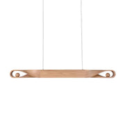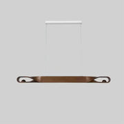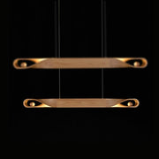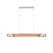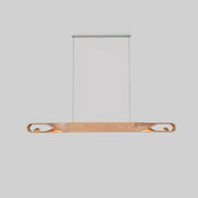 The chandelier features an elegantly carved wood beam that subtly twists at the ends to create a sense of movement and flow. This simple design highlights the natural grain and texture of the wood, making it a striking centerpiece for any modern or transitional space. A perfect blend of functionality and artistry, the Elwood chandelier adds a touch of sophistication to a dining area, kitchen or living space while showcasing the enduring appeal of natural materials.