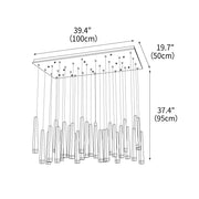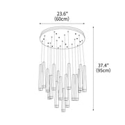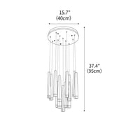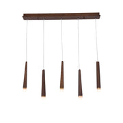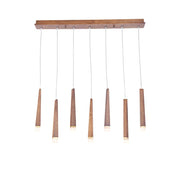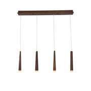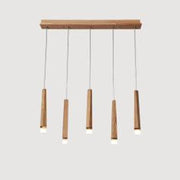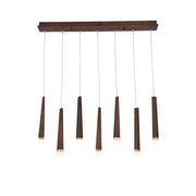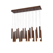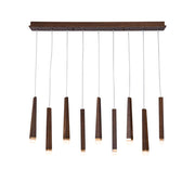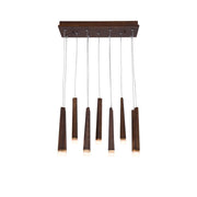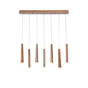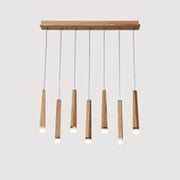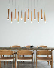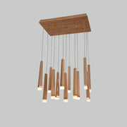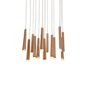 The Firewood Stick Chandelier is a striking, modern lighting fixture that features an array of sleek wooden sticks suspended at varying heights. The design of each chandelier evokes the natural simplicity of stacked firewood, with subtle LED lights at the base creating a warm, inviting glow. Slender wooden elements add texture and depth to the overall design, while minimalist cables enhance the sense of vertical space.