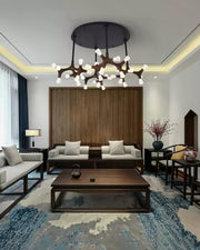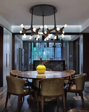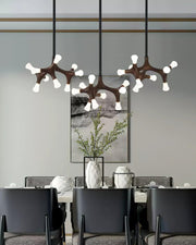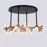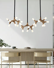 Each extended arm is like a flower stem, and the bulb at the end is like a flower bud about to bloom, emitting soft light and creating a fresh and vibrant atmosphere. The fusion of wooden texture and modern metal structure makes the "flower bud" both natural and warm, yet modern and simple.