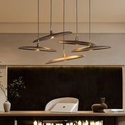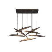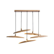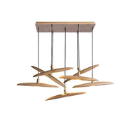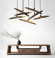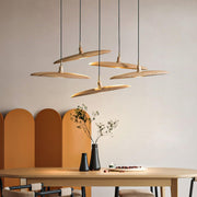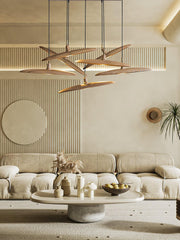 Featuring multiple slender panels suspended in an elegant asymmetrical arrangement, this lamp evokes a sense of free-flowing elegance. Its wooden elements and warm light create an inviting ambience, perfect for modern living spaces that aim to blend organic beauty with minimalist style.