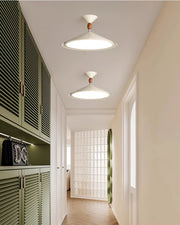 The Palefire Ceiling Light from Mooiehome is a statement of refined design and soft functionality. Its wide, conical aluminum shade in a creamy finish evokes a sense of vintage charm, subtly accented by a warm wooden detail that adds a natural touch. Designed for modern living, the acrylic diffuser ensures glare-free illumination—perfect for kitchens, corridors, or compact living areas. With its sculptural form and balanced materials, Palefire offers a harmonious blend of style and practicality, transforming everyday spaces into thoughtfully lit interiors.