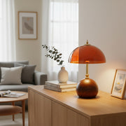 This lamp features a meticulously crafted acrylic lampshade that emits a soft glow. Paired with a richly textured walnut-colored spherical base and a smooth lamp post, it creates a captivating visual contrast. It's more than just a light source; it's a warm focal point in your living space.