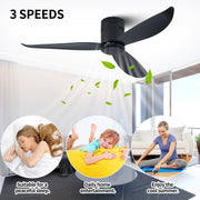 Low Profile Black Flush Mount Ceiling Fan No Light 52"