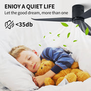 Make a stylish statement and circulate cool air with a ceiling fan, a discreet black recessed ceiling fan without light. Its modern, sleek design blends into any decor, while its superior performance and airflow will wow you!