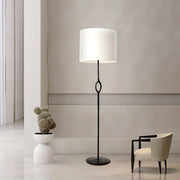 Illuminate your space with the Alassis Floor Lamp, a unique creation of metal and fabric that adds an artistic touch to any room. Its elegant almond center, crafted with 18th century techniques, is coated in a rich black bronze color by skilled masters. Lighting never looked so luxurious.