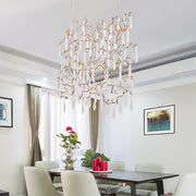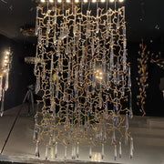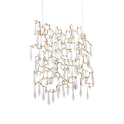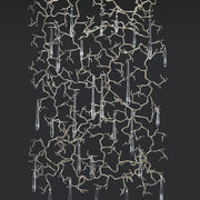 Transform your space into a winter wonderland with the Aqua Window Chandelier. Inspired by water drops, this elegant brass chandelier evokes a strong connection with nature. Its floating glass shards add an airy touch and sophisticated charm, making it the perfect centerpiece for any room. Bring the beauty of nature indoors with this stunning piece.