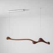 Its sleek, elongated form and fluid, undulating lines suggest seamless movement frozen in time. Contrasting colours accentuate its sinuous silhouette, making it a striking piece that complements the clean, modern aesthetic of any space. Perfect for those who appreciate simple elegance, this pendant brings a touch of sophisticated, understated artistry to contemporary interiors.