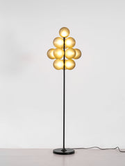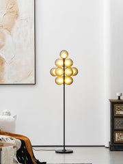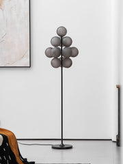 Grape Floor Lamp is an exquisite and unique floor lamp known for its distinctive design and high-quality materials. Its body is made of iron and glass, imparting durability and longevity to the entire lamp fixture. The lamp body is presented in a deep black color, exuding an elegant and mysterious ambiance that seamlessly blends with various interior decor styles.