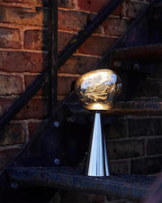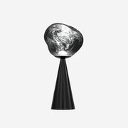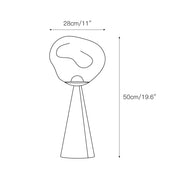 The Lava Charge Table Lamp features a unique modern design and elegant light effects, adding an artistic touch to your home. It consists of a refined metal base and a Acrylic shade, showcasing simplicity and elegance. The cone-shaped base, broad at the bottom and narrowing towards the top, supports the glass shade with a circular metal ring, ensuring stability and a sleek aesthetic. The Acrylic shade, with its abstract texture, reflects captivating light whether clear or dark, creating a dreamy and mysterious ambiance when lit.