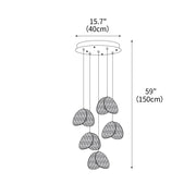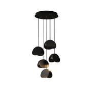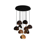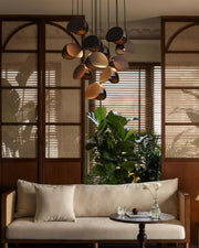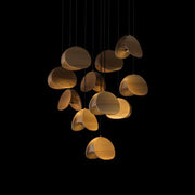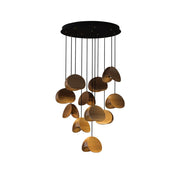 The Falling Leaf Chandeliers are inspired by the graceful falling of leaves in nature. Each wooden chandelier is shaped like a leaf and hangs at different heights to create a dynamic and charming atmosphere. The natural wood tones bring warmth and organic beauty to the design, while the soft light emitted from within each chandelier enhances the atmosphere with a gentle glow.