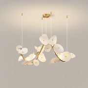 The Lotus Petal Chandelier is a sophisticated fusion of art and illumination. Fashioned from fine ceramic, each petal boasts a lifelike delicacy, culminating in a breathtaking array of light. The metallic touches lend a contemporary flair to the fixture, providing a lustrous contrast to the matte finish of the ceramic. This chandelier, a symbol of purity and renewal, evokes the serene beauty of a lotus pond at dawn. With its soft ambient lighting, it creates a focal point that is both calming and captivating. Perfect for gracing the center of a living room or hovering above a grand dining table, the Serenity Petal Chandelier promises to infuse your space with a timeless elegance and a touch of nature's bliss.