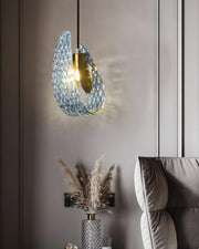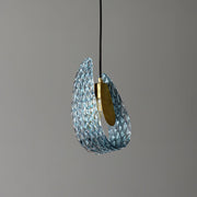 The polished brass base supports a ribbon of blue Murano glass crafted in the "a caldo" technique, with a diamond pattern that adds a timeless touch. The natural brilliance of the glass is accentuated by shimmering light and captivating colored tones.