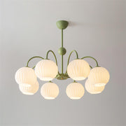 Elevate your space with the playful elegance of the Renee Chandelier. This captivating ceiling light features a nature-inspired green metal frame with gracefully arched arms, holding five sculpted glass globes with a textured pattern reminiscent of delicate petals. The soft glow from the globes creates a warm, inviting ambiance, perfect for modern, eclectic, or contemporary interiors. Ideal for dining rooms, living spaces, or even as a statement piece in bedrooms, the Renee Chandelier brings a touch of organic charm and refined design to any setting.