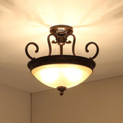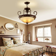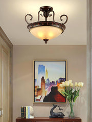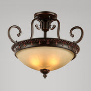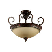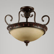 This Symphony Semi-Flush Ceiling Light of wrought iron with stylish durability. A beige glass shade illuminate charm all throughout foyers, kitchens, bedrooms and utility rooms. Will complement a variety of home styles.