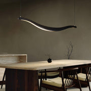 The fixture's fluid, undulating shape brings a sense of calm and elegance to any space. Crafted in a smooth wood finish, this pendant lamp blends natural beauty with modern design, making it the perfect accent piece for your dining room, kitchen or living room. An integrated LED light strip provides soft, ambient lighting, enhancing the serene and sophisticated atmosphere it creates.
