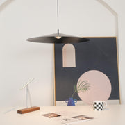 The Zero Pendant Light presents a minimalist aesthetic with a simple disc-shaped design, smooth lines and low-key and exquisite shape. Suspended on a thin wire, the wide and flat lampshade brings soft and even light to the space, exuding a calm modern atmosphere. Its simple shape and clean design make it an ideal choice for dining rooms, kitchen islands or office spaces.