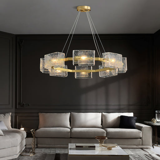 MooiehomeElevate your interior with the captivating elegance of the Water Ripple Glass Chandelier from Mooiehome. Crafted from sturdy iron and beautifully t...