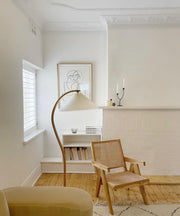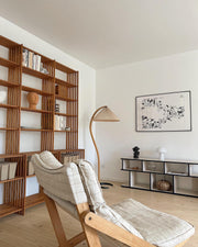 The Caprani Floor Lamp energizes any space with its unique design, combining a sinuous organic form and contrasting natural materials to create a striking sculptural piece. A timeless addition to any home decor that offers a playful expression and modern style.
