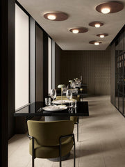 The Kwic Wall Lamp is an ideal addition to any space. Its minimal and bold design features a unique juxtaposition of mixed-materiality and curvilinear form. The white glass globes shine brightly against the metal discs, providing both task, ceiling and wall lighting. Transform any space with the Kwic Wall Lamp.