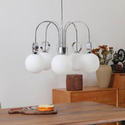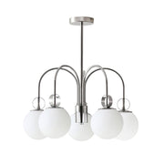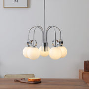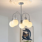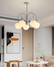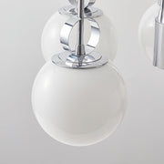 Bring timeless modern design to your home with the Carisa Collection Chandelier. Inspired by mid-century fashions, its classic chrome finish and glossy white glass globes create a chic, stylish look. Perfect for any room.