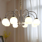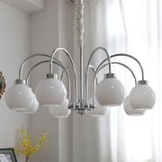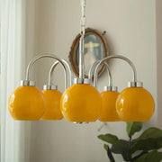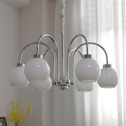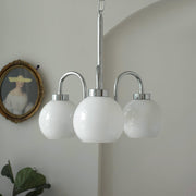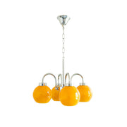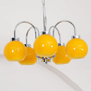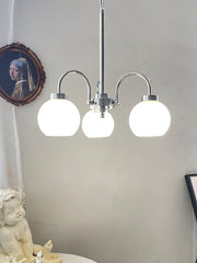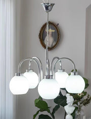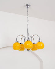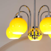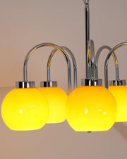 This modern and elegant Loa Chandelier features a metal body with a sleek chrome finish, and glass lampshade that comes in a selection of either white or yellow. Its refined design is sure to make a statement in any room.