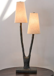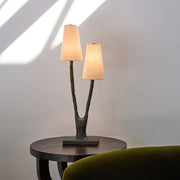 The Lofers Table Lamp showcases a unique, organic design with twin copper stems and soft fabric shades, offering warm and inviting illumination. Its artistic form adds a touch of modern elegance to any space, making it perfect for side tables, desks, or bedside settings. Combining durability with a minimalist aesthetic, this lamp is both a functional and stylish addition to contemporary interiors.