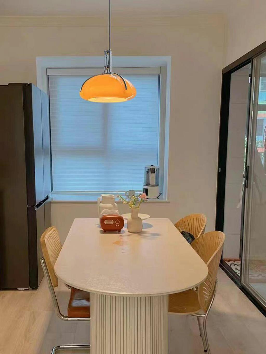 The Quadrifoglio Pendant Light is a classic mid-century modern piece with a unique biomorphic shape. Crafted from chrome-plated metal and orange colored plexiglas, this elegant pendant creates an eye-catching and timeless visual effect and is sure to be a conversation starter.