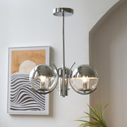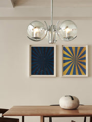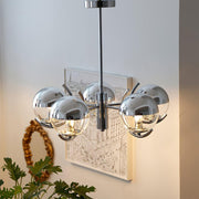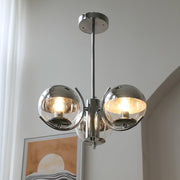 Take your designs to the next level with this modern chandelier. Its distinctive globe forms and linear arms are sure to make a statement, while the semi-transparent mirror glass shades add just the right amount of glamour. Get ready to go bold and elevate your space!