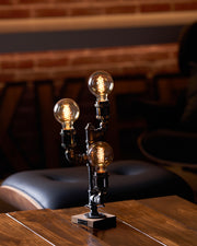 Introducing the Wood Edison Table Lamp by Mooiehome, a perfect fusion of rustic charm and industrial design. Crafted with high-quality metal and natural wood, this table lamp showcases a unique aesthetic that adds a touch of vintage elegance to any space.The lamp features three classic Edison-style bulbs, each emitting a warm, inviting glow that creates a cozy and ambient atmosphere. The metal components, with their textured finish, enhance the industrial vibe, while the wooden base adds a grounding, organic element.