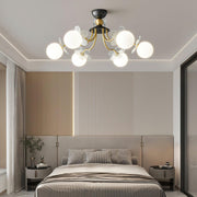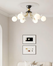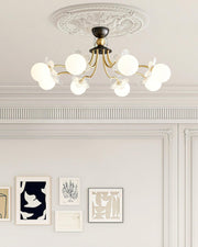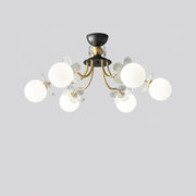 Blossom Glow is inspired by the natural elegance of blooming flowers. Featuring white glass globes set between delicate glass petals and gilded branches, this chandelier adds a touch of botanical beauty to any space.