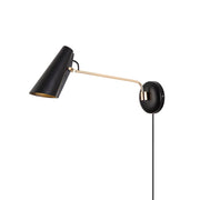 The Birdy Plug-in Wall Lamp, a design classic since 1954, has been re-launched with its original shape and highly functional features preserved. Available in white/grey with steel finish, or black with black or gold metal finish. Awarded Golden Medal at Milan triennale.