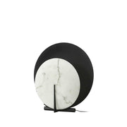 The Corbett Asteria Table Lamp offers a classic style with a contemporary twist. The single piece of Vintage Carbon steel metalwork supports delicate alabaster discs that diffuse a soft, moon-like glow. Perfect for adding refinement to any room, this elegant lamp is an exquisite addition to any home.