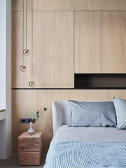 - The metal lamp body is available in gold, rose gold, and matte black finishes.
