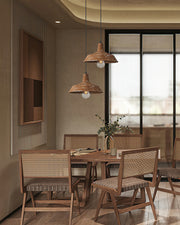 The Earthen Bell Pendant Light has a rustic, handcrafted look with its earthy, textured finish and bell-shaped silhouette. Its warm hue brings a sense of groundedness and natural charm to any space. The exposed bulb complements the raw, handcrafted design, perfect for country, industrial or modern interiors seeking a hint of organic flair.