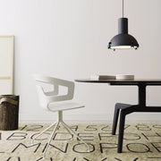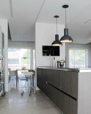 The overall shape of the lamp is like a high-power lamp in a factory, simple yet textured, and the black metal material and rough lines create a cold industrial atmosphere. The detailed design below seems to be the result of hand-forging, showing a sense of solidity and reliability.