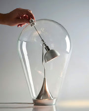Illuminova Adjustable Table Lamp is a refined table lamp made of hand-blown glass. Its unique design combines modernity and functionality. The transparent lampshade contains a beam of vibrant light, which can be directed at any angle to give the space different light and shadow effects, perfect for reading or creating a private and personalized atmosphere. The chrome-plated metal base supports a movable lamp arm, which can be easily adjusted by sliding the external magnet to accurately illuminate the desired area. This lamp is not only a highlight of home decoration, but also a perfect combination of practicality and artistry.