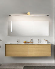 Koge has a matte black finish and integrated LEDs. It is built with a small rounded base and a vertical bar. In total, it measures 60 cm, enough to illuminate a work surface, a mirror, above a table, or other. It has a high IP54 protection index, is compatible with bathrooms, and diffuses beautiful warm white-type lighting (3000K). Minimalist and ultra design, it will blend perfectly into a modern style room.