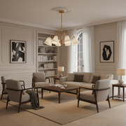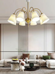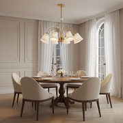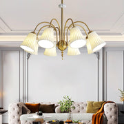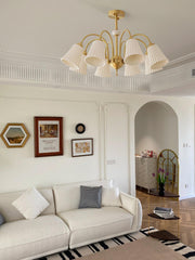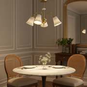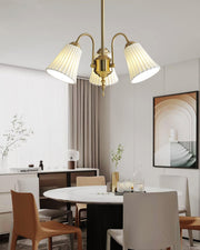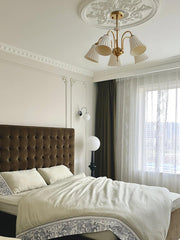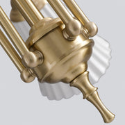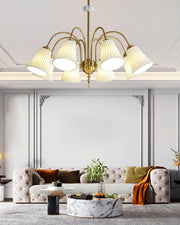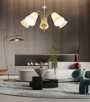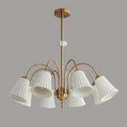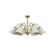 Bring classic elegance to your interior with this Medieval Ceramic Trumpet Chandelier. Handcrafted from sturdy ceramic and finished with a gold-colored tubular arm frame, this timeless design will enhance any modern or traditional home.