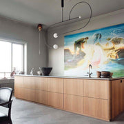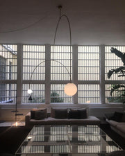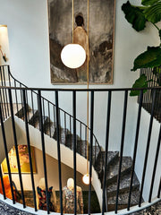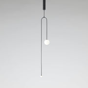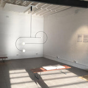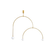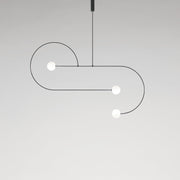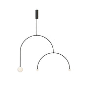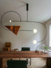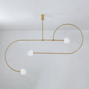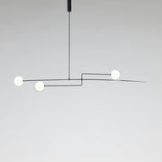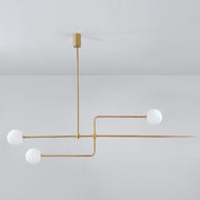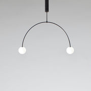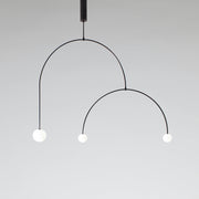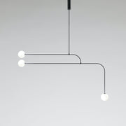 The Mobile Chandelier adds a modern touch to any room with its minimalist design featuring uncluttered forms and warm light from white blown glass. Its graphic lines create an eye-catching illumination that blends seamlessly with any décor.