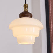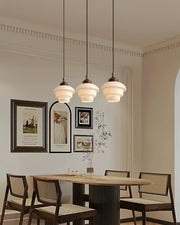 The Pinecone Pendant Light is inspired by pine cones. Its unique layered design makes the lampshade look like a delicate pine cone hanging in the air. The white glass lampshade creates a soft light and exudes a warm atmosphere, while the wood and brass details on the top add a natural and vintage charm to the overall design. Whether it is hung above the dining table or in the center of the living room, the Pinecone Pendant Light can bring a warm and unique natural atmosphere to the space, making it the perfect choice for those who love nature-style homes.