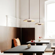 Elevate your space with the Plate Pendant Lamp. Crafted from rubber solid wood, this lamp boasts a clear wood grain and uniform texture. Paired with a yellow travertine body, it exudes simplicity and freshness. Shine a light on your unique style with this playful and quirky addition to your home.