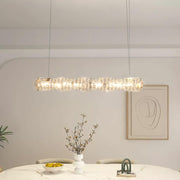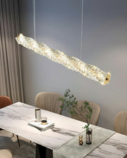 The lamp presents a frozen visual effect through the unique combination of cut glass and internal lighting, as if bringing the beauty and freshness of winter indoors. Its simple linear design and exquisite materials make this chandelier a dazzling focal point in any modern space.