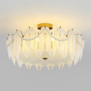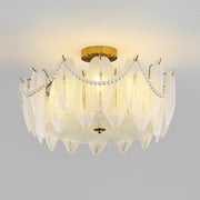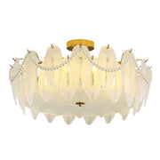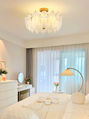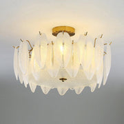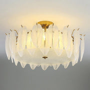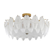 Add a touch of retro style to your home with this Retro Feather Ceiling Lamp! This unique combination of feathers, metal lines, and glass texture creates an eye-catching and contemporary effect that will be sure to be a conversation starter. Be bold and brighten up your home with this daring design!