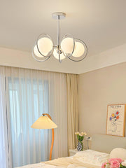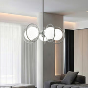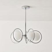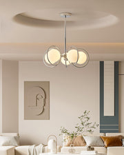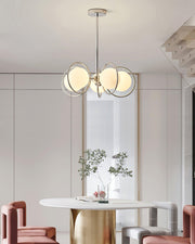 Stunningly modern, this Revolution Chandelier offers a fashionable flair with its chrome hoops and Satin White glass balls. Perfect for modern and transitional spaces, this chandelier is sure to make a statement. Light it up! 💡