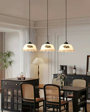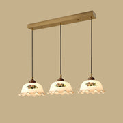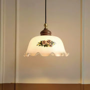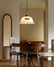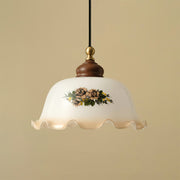 Savannah Pendant Light is a pendant light that exudes vintage charm. Its elegant floral pattern and wavy lampshade edges showcase classic pastoral style. The lampshade uses a soft creamy white tone, which transmits warm light and adds a nostalgic atmosphere to the room. The brass details combined with the wooden lamp head not only enhance the texture of the lamp, but also make the overall design more charming.