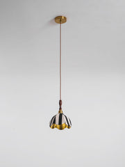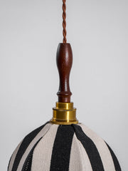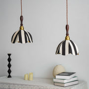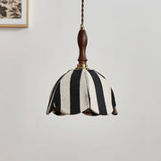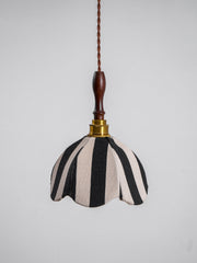Stripe Tulip Pendant brings a touch of classic charm and playful style to any space. Its tulip-inspired shape and bold black-and-white vertical stripes evoke a vintage, Art Deco feel, while the warm wood-accented top adds an element of rustic elegance. This pendant light is perfect for hanging over small dining tables, reading nooks, or as an accent in eclectic interiors. The unique striped fabric shade creates a soft, ambient glow, adding warmth and character to your home.