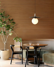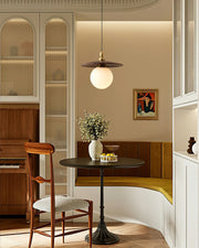 Zen Orb Pendant Light takes minimalism as its core design. The round lampshade and the flat metal cap complement each other to create a sense of balance and harmony. The lampshade is made of soft milky white glass, which emits warm and even light, suitable for creating a tranquil atmosphere. The metal lamp body details enhance the overall texture, and the combination of black and silver, walnut and gold gives a combination of modernity and Zen.